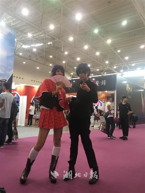 10月1日,記者在武漢國際博覽中心看到,展會現場人聲鼎沸,展館外,不少年輕人排隊入場。不少COSPLAY(角色扮演)達人身著各類cosplay服裝,將動漫人物模仿地惟妙惟肖,引來眾人圍觀拍攝?,F場還有數十個售賣動漫周邊產品的攤位,滿足動漫迷需求。